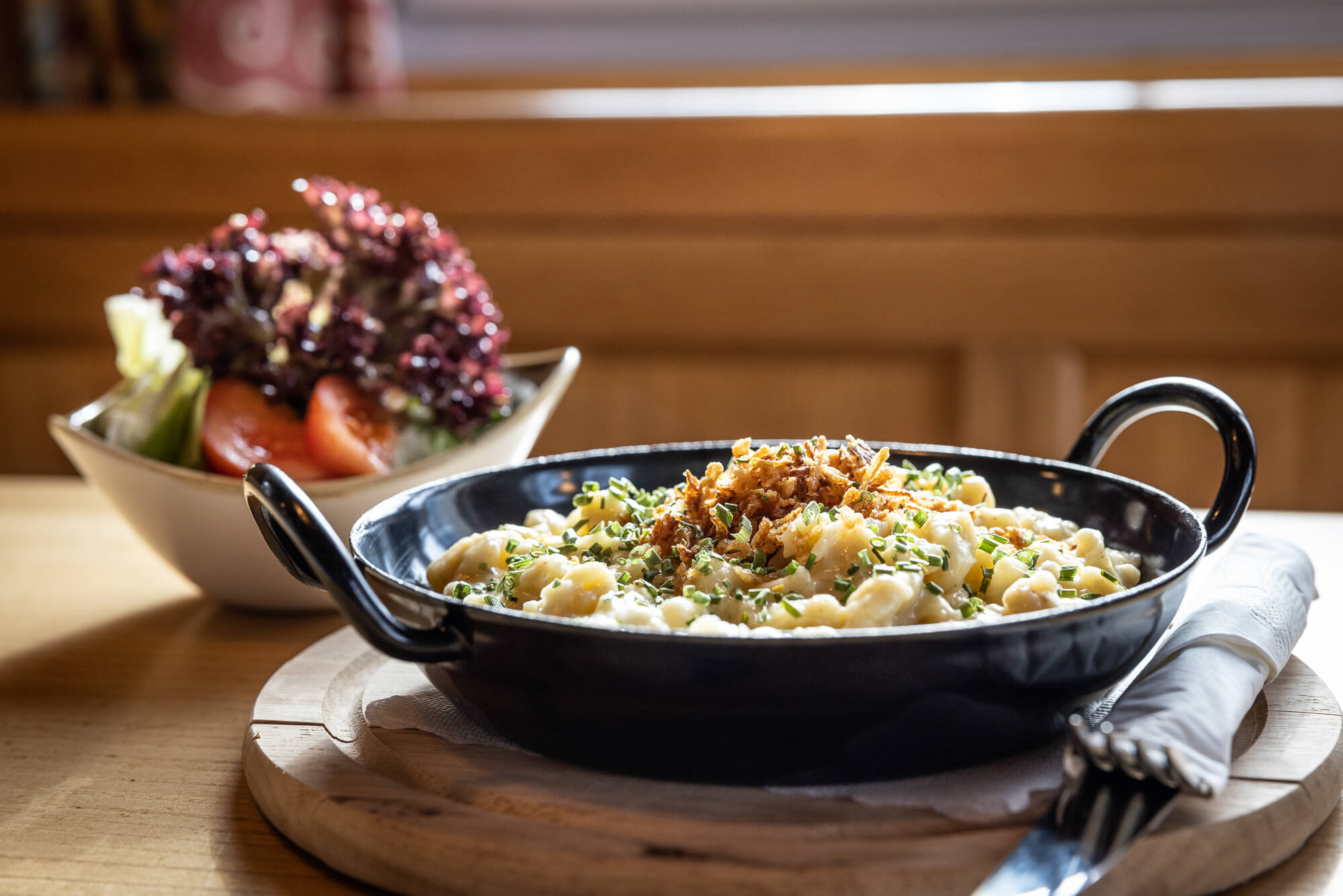 frisch zubereitete, regionale Speisen. Kasnocken, Gulaschsuppe oder süße Köstlichkeiten, hier gibt es was das Herz begehrt.